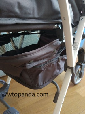 Корзина в коляске достаточно вместительная и удобная. Но при опущенной спинке будет немного затруднен доступ к ней. Поэтому производитель сделал по бокам корзины молнию.