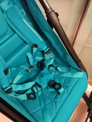 Бампера у этой коляске нет, но 5-ти точечные ремни удобные с простой регулировкой.
