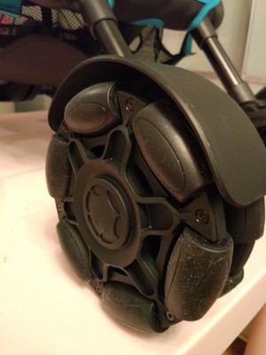 И главное отличие и большой плюс на мой взгляд- это колеса. Мы привыкли к стандартным пластиковым или резиновым колесам, а здесь ролики. Колеса не очень большого диаметра, но какие же они маневренные и всепроходимые. Коляска превращается в настоящий танк, который пройдет по любой грязи, траве, лесным дорогам и тд. Ролики легко крутятся и коляска прекрасно поворачивается. Колеса очень легко снимаются для мойки.