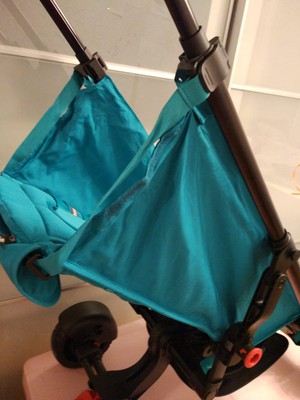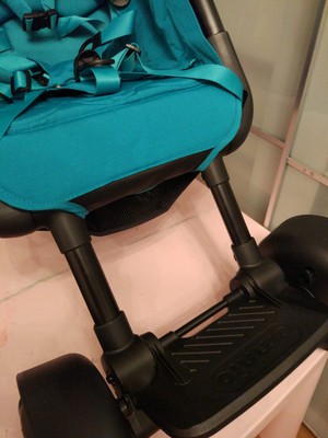А подножки, к которой мы так привыкли в обычных колясках, тут нет. Есть удобная пластиковая подножка на раме коляски, которая может складываться. Но если ребенок еще маленький, он может до подножки пока не достать. Это не минус коляски, а скорее ее особенность, тк коляска очень компактно складывается, и лишнее просто будет мешать.