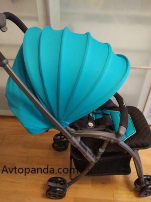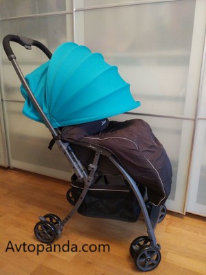 Капюшон легкий, но держит хорошо. В сидячем положении спинки капюшон закрывает до бампера, в лежащем положении спинки как стандартный капюшон.