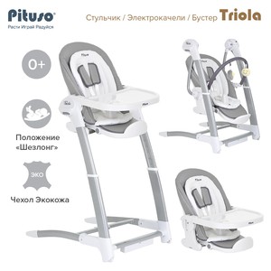 4. PITUSO TRIOLA 3 в 1 - стульчик с оригинальным функционалом: электрокачели, стульчик для кормления, стульчик-бустер. Электрокачели для самых маленьких оснащены красивыми мелодиями и звуками природы, разными скоростями качания, таймером. Удобные наклоны спинки позволяют комфортно отдыхать или даже спать в стульчике. Стульчик-бустер применяется без рамы стульчика и устанавливается на взрослый стул, кухонный уголок, удобен в путешествиях и поездках (например, в гостях). Основной чехол стульчика выполнен из качественной эко кожи, легко притирается тряпочкой после кормления или снимается для стирки. Дополнительно предусмотрен текстильный вкладыш, который особенно удобен для самых маленьких. Стульчик отличается отличным качеством и небольшой ценой.