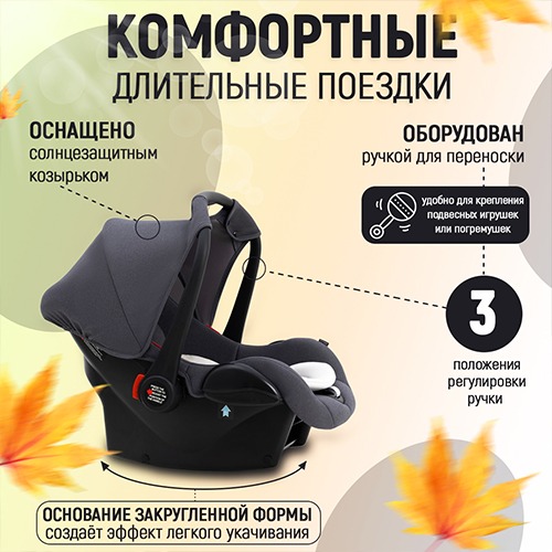 Это кресло предназначено для детей возрастной группы 0+ и подходит для малышей весом от 0 до 13 кг, обеспечивая комфорт и безопасность в течение первого года-полутора лет жизни.