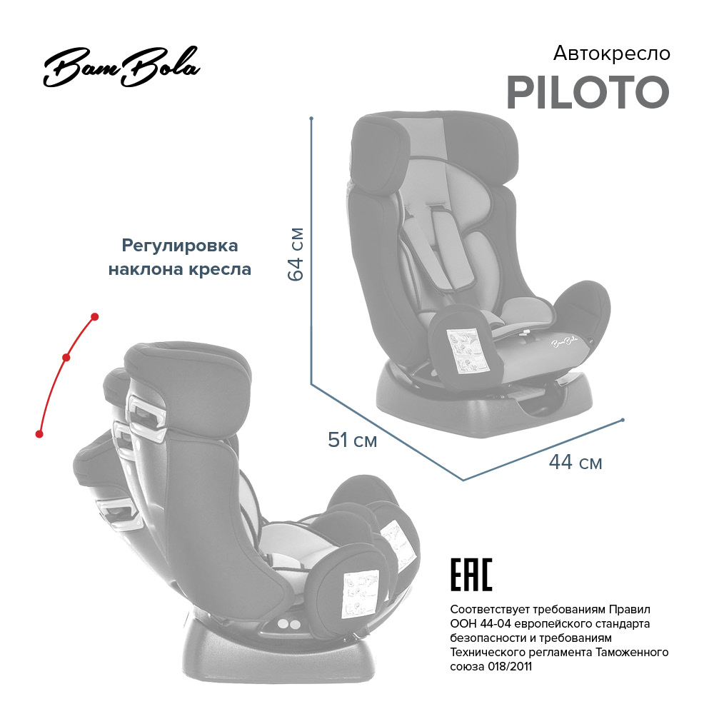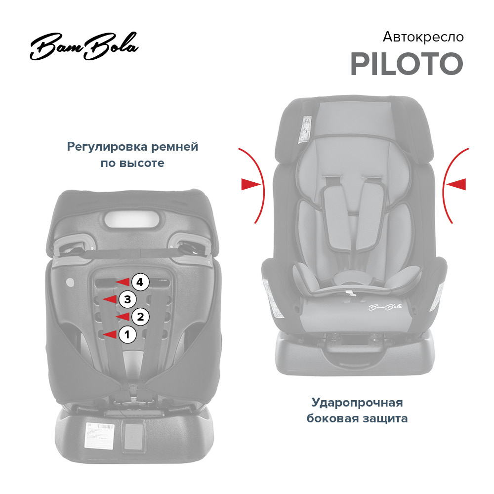 Автокресло BAMBOLA PILOTO (Бамболо Пилото) - детское автомобильное кресло предназначено для детей от рождения до 7 лет весом до 25 кг. Одним из отличительных свойств автокресла является его универсальность. Его можно использовать с момента рождения малыша до того, как ребенок пойдет в школу. Автокресло имеет ярко выраженную боковую защиту и надежную систему крепления внутренних пятиточечных ремней, что обеспечивает безопасность ребенка при резких поворотах и боковых ударах. Благодаря ортопедической форме спинки и регулировки наклона автокресла, мягкому вкладышу и накладкам внутренних ремней безопасности ребенку удобно и комфортно в поездке. Внутренние пятиточечные ремни регулируются по высоте в зависимости от роста ребенка. В детском автомобильном кресле ваш ребенок будет путешествовать в безопасности и с удовольствием!