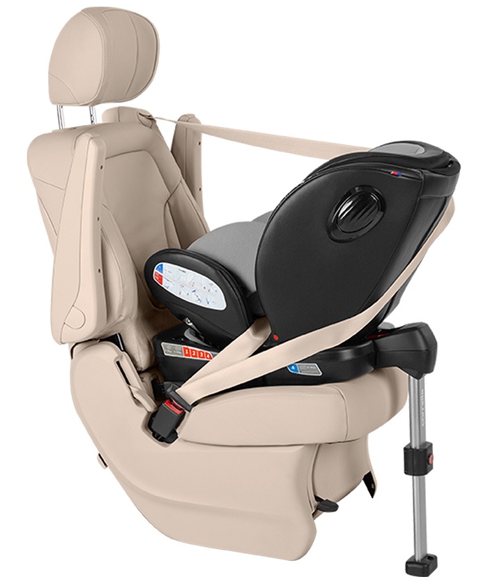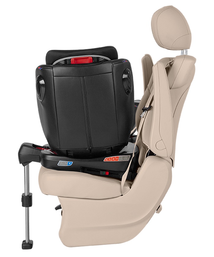 - Установка в машине с помощью системы изофикс и упора в пол.