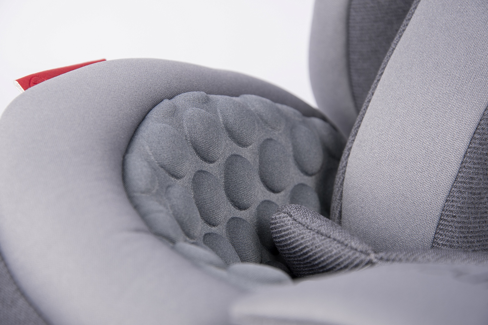 Корпус сиденья Logos isofix вентилируется, благодаря этому ваш ребенок не будет потеть во время путешествий в жаркие дни. Ту же функцию выполняет специальный пузырьковый материал на сиденье.