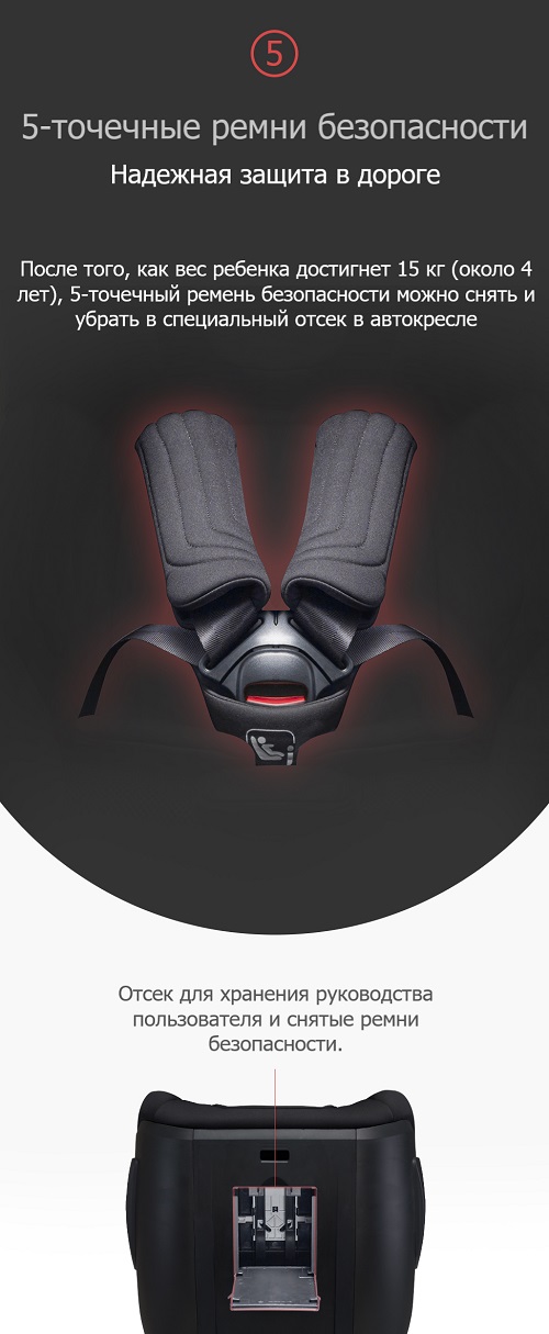 - 5-точечные ремни безопасности с мягкими накладками