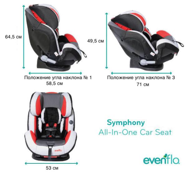 Автокресло Evenflo Symphony e3 DLX Platinum Series (Rollover tested) - детское автомобильное сидение для ребенка с рождения, от 2,2 кг, до 12 лет с высокими показателями безопасности и уникальной системой, позволяющей установить кресло в машину за 60 секунд.