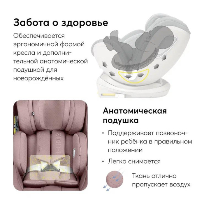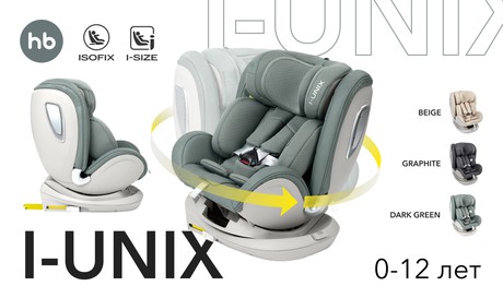 Автокресло Happy Baby I-UNIX (Хеппи беби Ай юникс ) - поворотное автокресло, которое отвечает всем требованиям к безопасности и комфорту. Автокресло растет вместе с ребенком и предназначено для ребенка с рождения до 12 лет. Модель имеет поворотный механизм, который позволит поворачивать кресло против хода движения для безопасной поездки новорожденного или по ходу движения для ребенка старше 15 месяцев. Против хода движения в модели предусмотрен очень большой наклон спинки и анатомический вкладыш, который позволит ребенку комфортно спать в кресле как в кроватке. Для ребенка постарше предусмотрено несколько вариантов наклона спинки от сидячего до положения для отдыха. По мере взросления ребенка подголовник и ремни безопасности будут регулироваться.