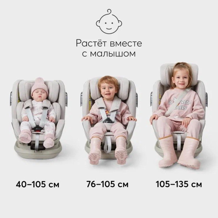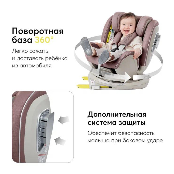 Благодаря вращающемуся на 360 градусов основанию, ребёнка легко усадить и достать из автомобиля. Автокресло надёжно крепится с помощью креплений Isofix и удобно для детей каждой возрастной группы.