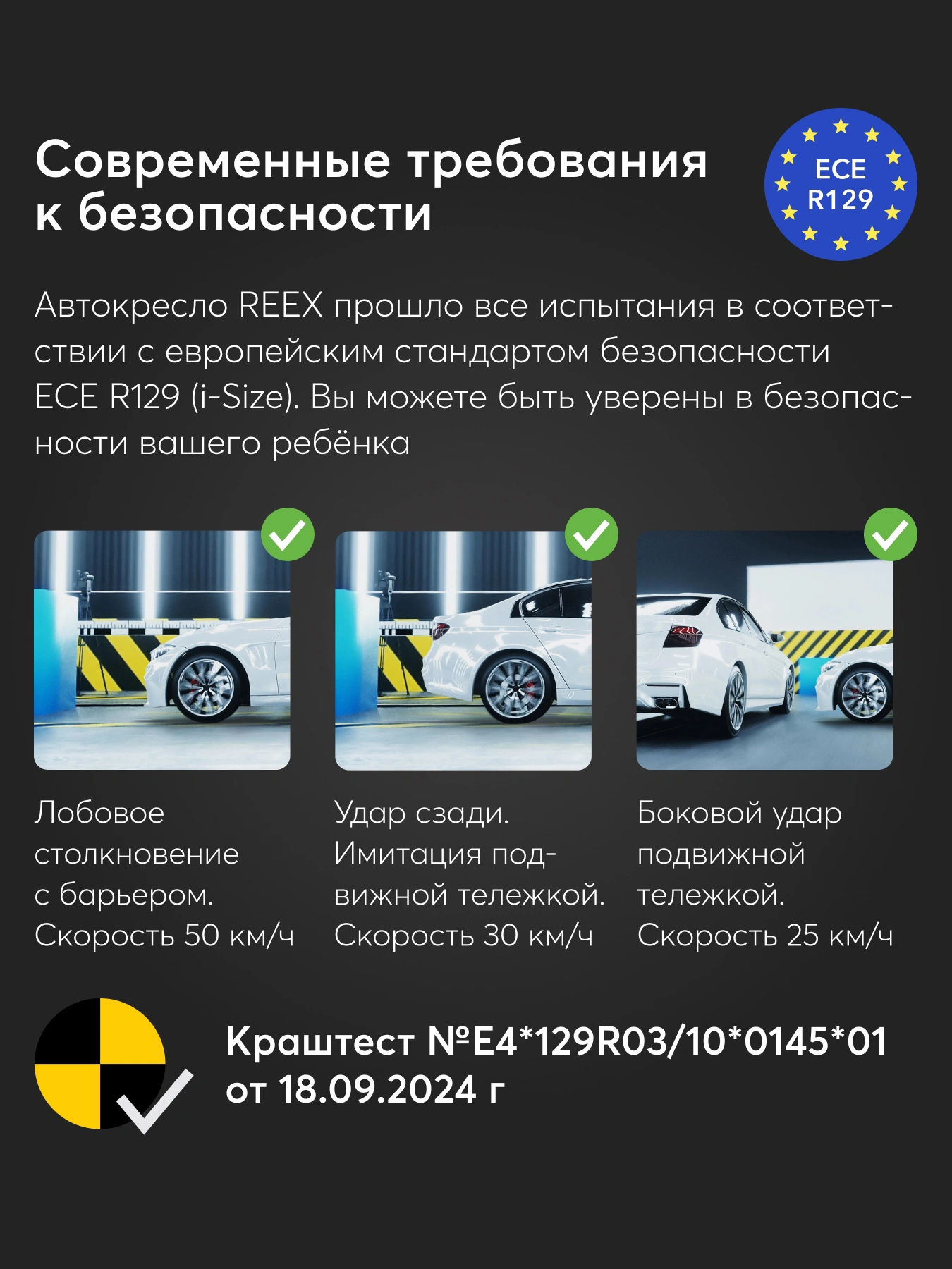 Автокресло Happy Baby REEX (Хеппи беби рикс ) - детское автокресло, которое растет вместе с вашим ребенком, начиная с первых дней жизни и до 12 лет. Оно отвечает самым строгим стандартам безопасности i-Size и одобрено по правилу ЕЭК ООН № 129, что даёт вам уверенность на дороге. REEX обеспечивает усиленную боковую защиту и отличается легкостью использования благодаря функции вращения на 360 градусов, позволяющей легко усаживать ребенка. Рекомендуется устанавливать автокресло против хода движения до 15 месяцев для дополнительной безопасности.
