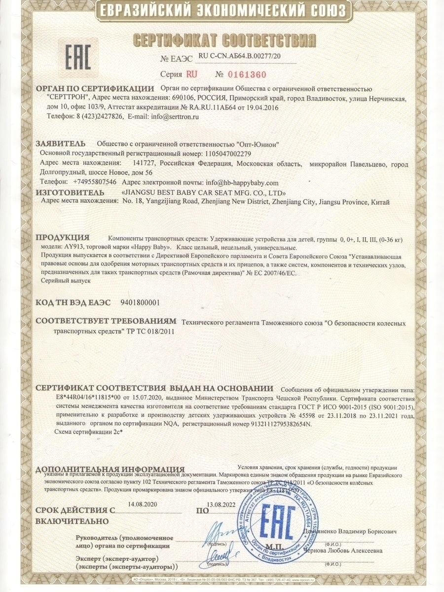 Автокресло одобрено для перевозки детей в соответствии с правилом ЕЭК ООН № 44 (ECE R 44).