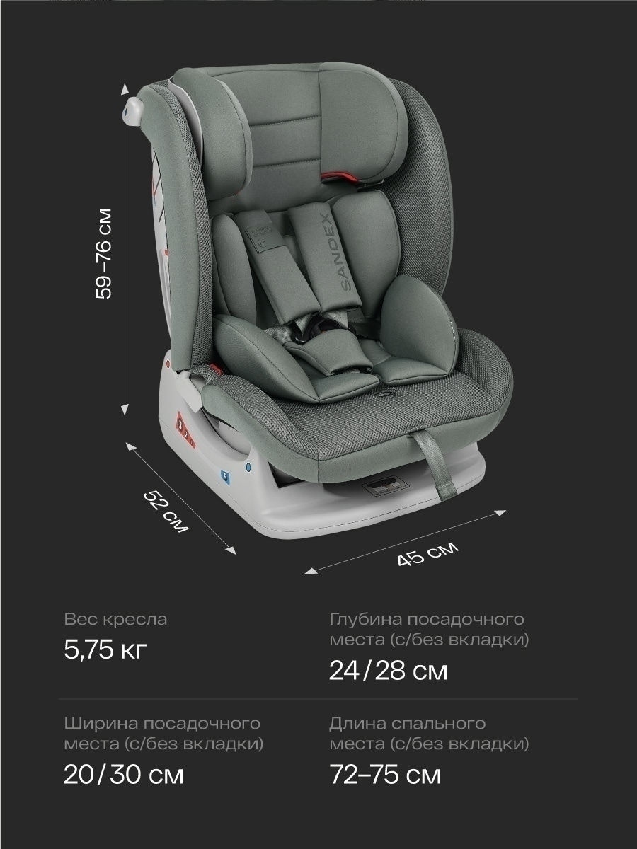 Автокресло Happy Baby Sandex (Хеппи беби сандекс) - качественное и безопасное автомобильное сидение для ребенка с рождения до 10-12 лет. Кресло растет вместе с ребенком, что поможет максимально долго использовать данную модель. Модель имеет ряд настроек, которые помогут сделать пребывание ребенка в автокресле комфортным. Подголовник меняется по высоте с помощью удобной кнопки вместе с ремнями безопасности. 4 наклона спинки помогут отрегулировать кресло под нужды ребенка. Для новорожденных предусмотрен специальный вкладыш, который дополнительно поддерживает неокрепшую спину и голову малыша.