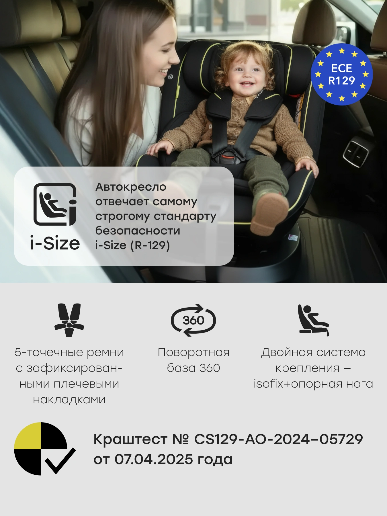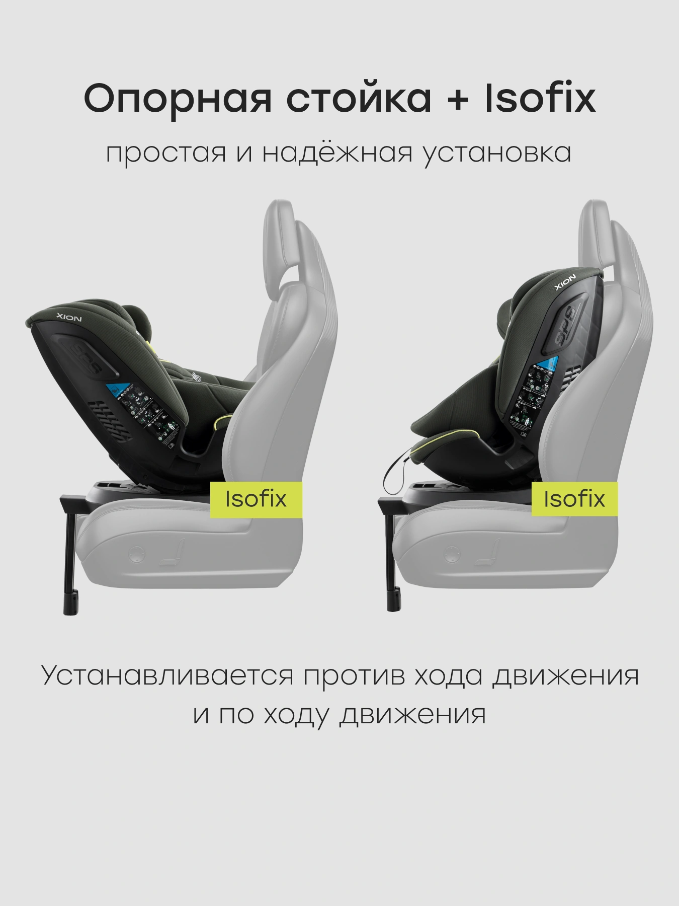 - Крепление в машине с помощью системы изофикс и упора в пол( все в комплекте).