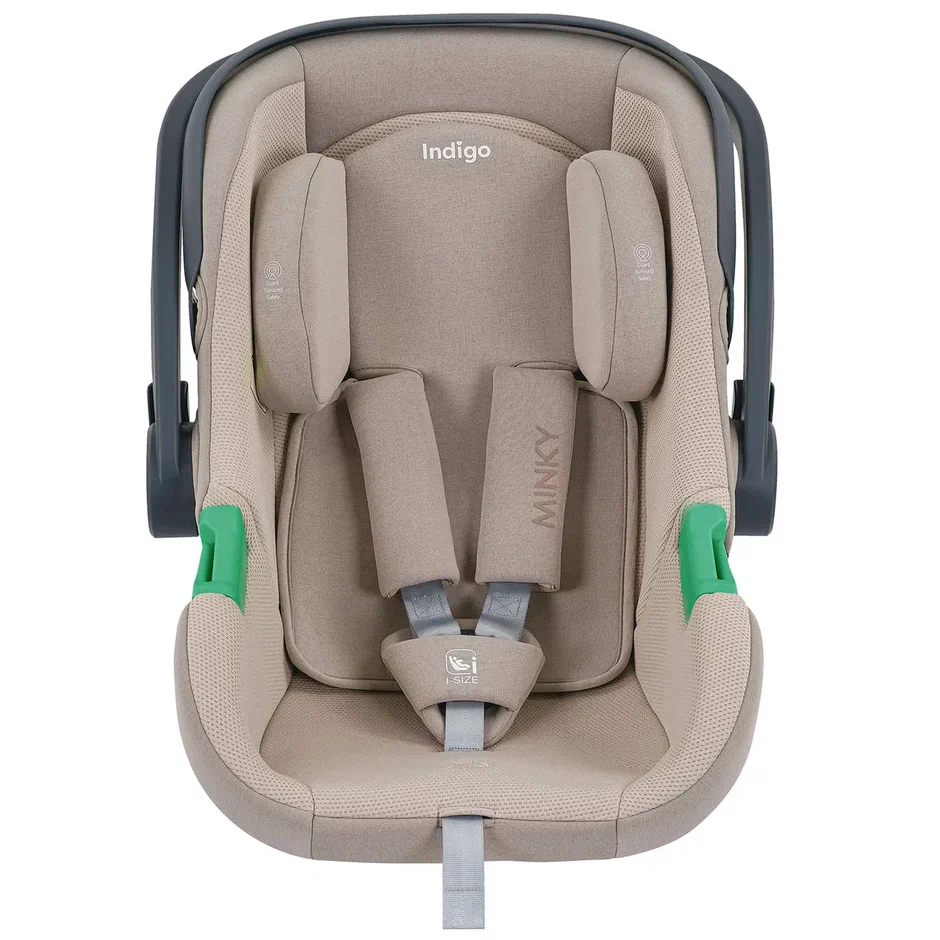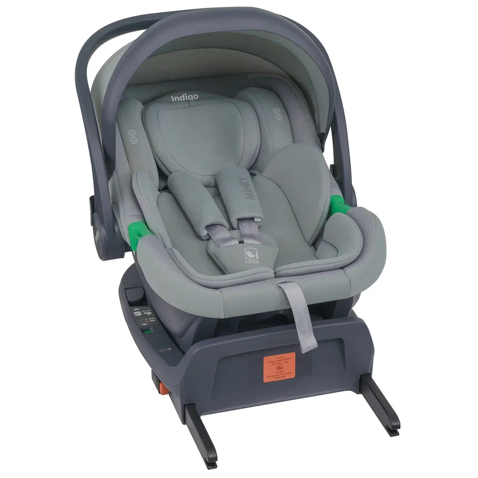 Автокресло Indigo MINKY I-SIZE с базой isofix (Индиго Минки ай сайз) - детское автокресло - переноска для ребенка с рождения до 15 месяцев, соответствующее последнему стандарту безопасности i-size. Стандарт безопасности i-size подтверждает безопасность кресла, проверку автокресла на боковой удар и более широкое сидение, позволяющее использовать его дольше.