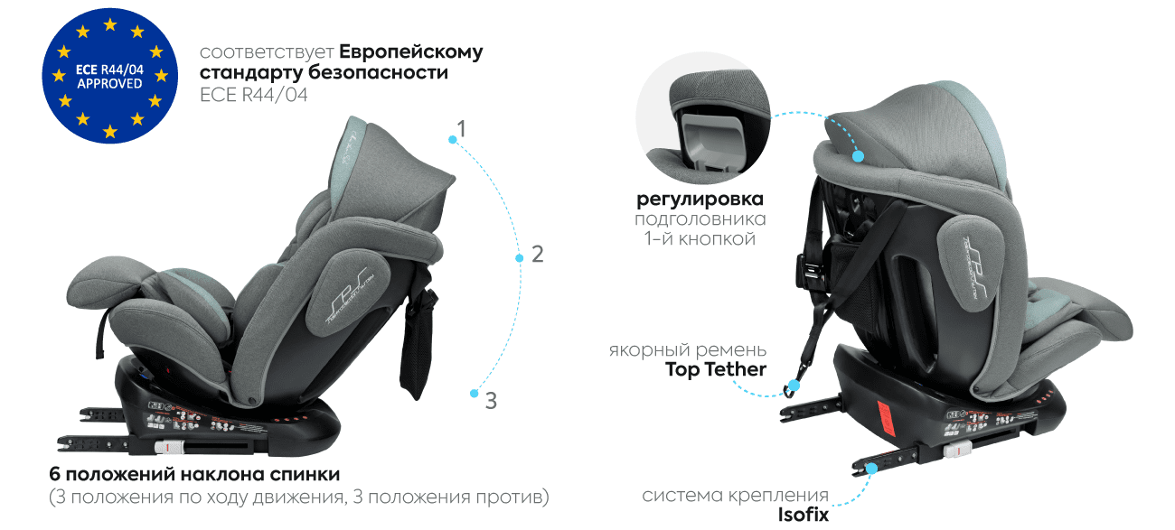- Автокресло соответствует европейскому стандарту безопасности ECE R44/04