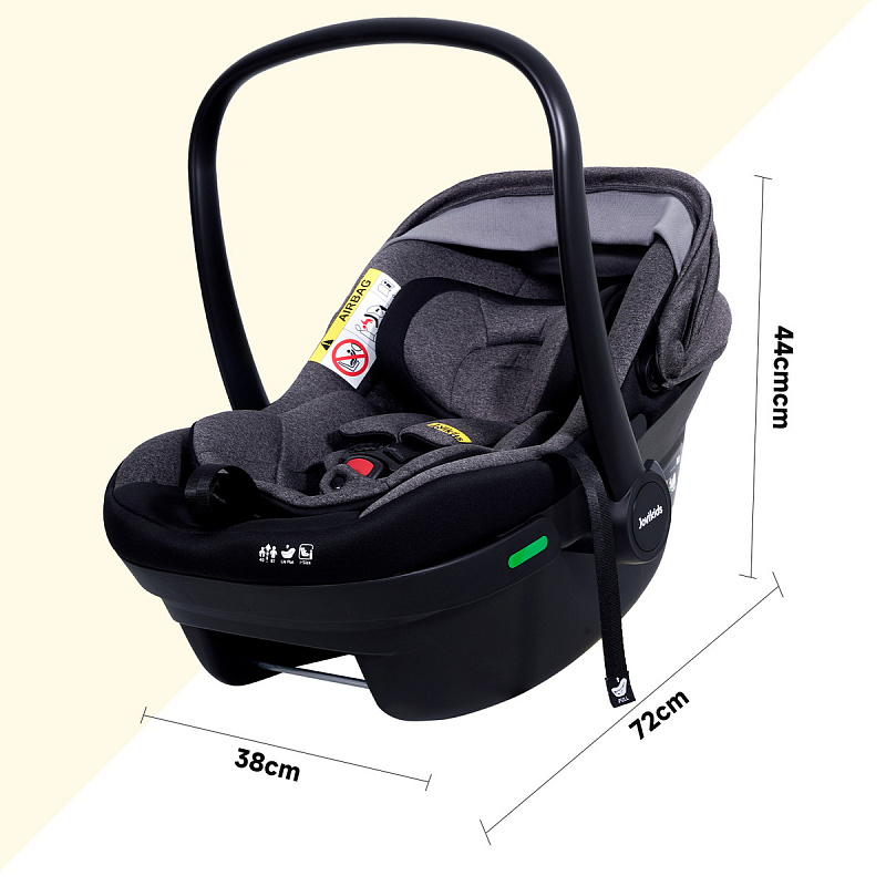 Автолюлька Jovikids Aria I-Size рекомендована для ребенка с рождения до примерно 18 месяцев, и ростом от 40 до 87 см, весом до 13 кг.