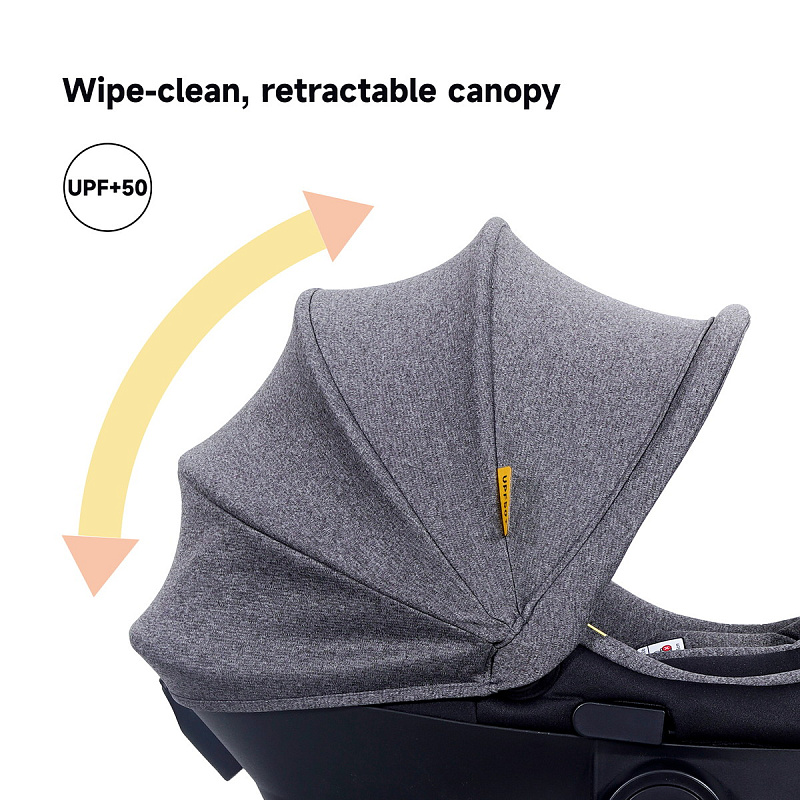 - Дно люльки с противоскользящими накладками, выполнено в форме чаши, что позволяет плавно укачивать малыша при установке на горизонтальную поверхность. Чтобы поставить люльку без качания можно опустить ручку для переноски через капюшон до пола;