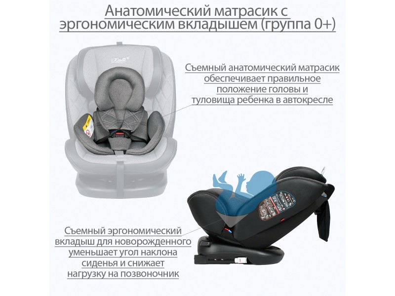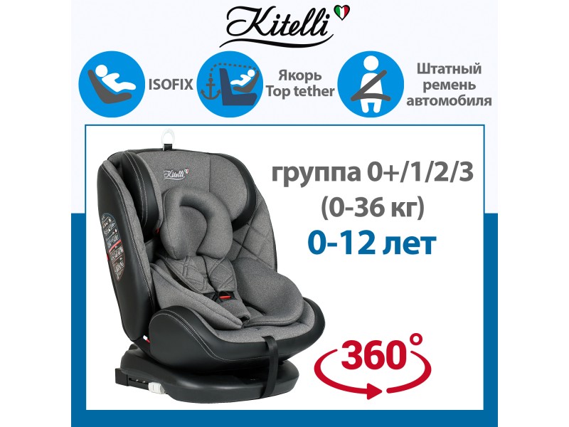 Автокресло Kitelli Stello (ST-3) (Кителли Стелло) - универсальное автокресло которое подойдет для ребенка с рождения до 12 лет, а так же может крепится в машине любым способом: системой изофикс + якорное крепление или штатным автомобильным ремнем.