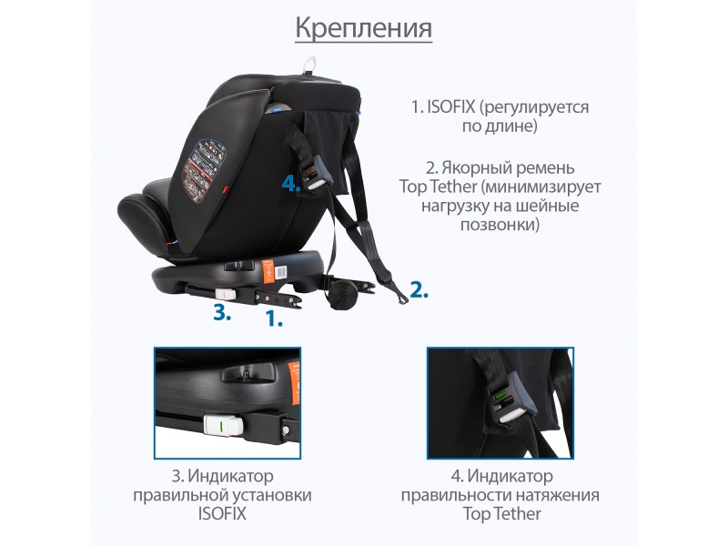 - индикаторы правильной установки креплений ISOFIX и Top Tether.