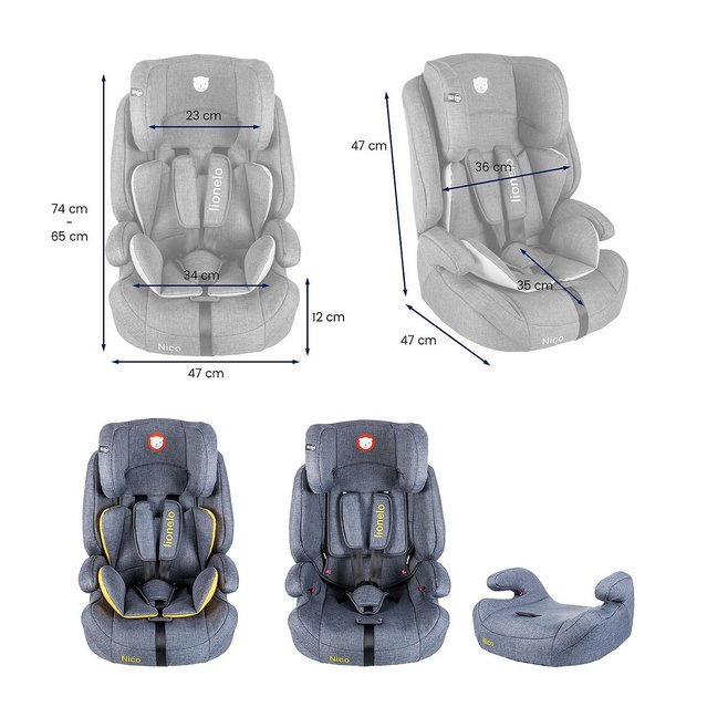 Автокресло Lionelo Nico (лионело нико) - стильное, комфортное и безопасное удерживающее устройство для детей от года до 12 лет. Обивка из джинсовой ткани с применением технологии FrictResist снижает неблагоприятные воздействия и продлевает срок эксплуатации кресла. С учетом того, что в комплект входит дополнительные вкладки, кресло прослужит не один год.