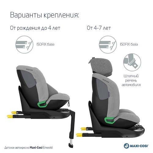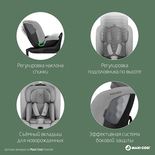 Maxi-Cosi Emerald (Макси кози Эмеральд) - автокресло предназначенное для детей от рождения до 7 лет (весом до 25 кг). Модель рассчитана на длительный период использования, легко адаптируется под рост ребёнка, обеспечивая комфорт и безопасность.