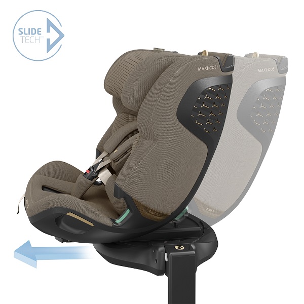 Поворотное автокресло с функцией SlideTech позволит не только повернуть автокресло к ближайшей двери, но и выдвинуть его, чтобы посадка ребенка была максимально удобной не только для ребенка, но и для его родителей.