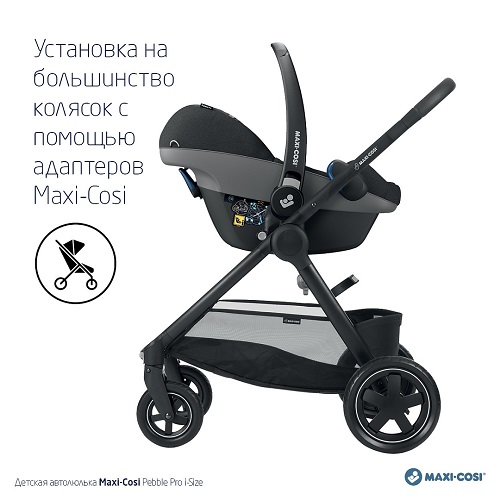 Автокресло Maxi-Cosi Pebble Pro i-Size можно установить на большинство европейских колясок с помощью специальных адаптеров, которые покупаются отдельно. Так же автокресло Pebble Pro i-Size можно брать на борт самолета.