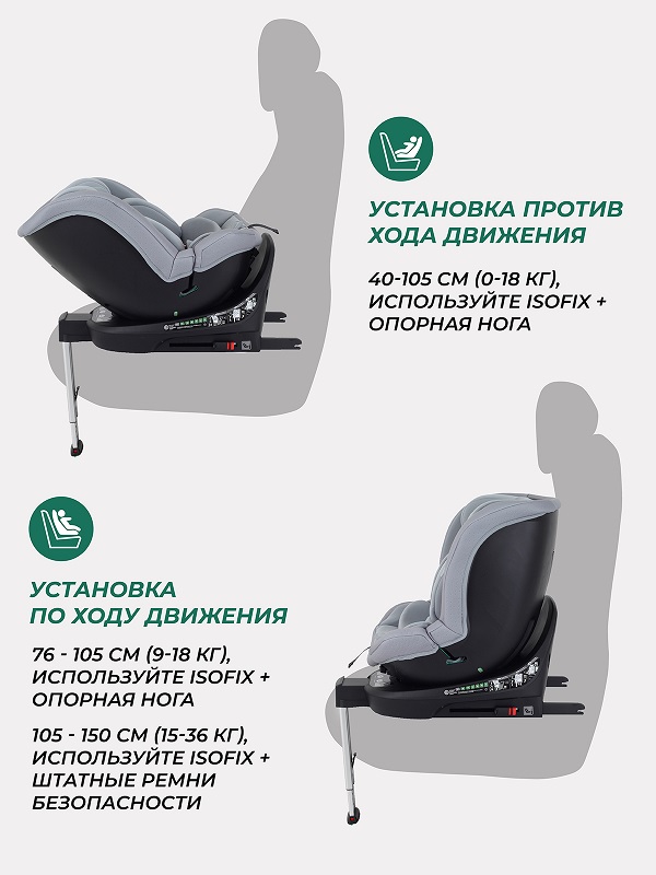 - упорная телескопическая нога - актуальная дополнительная защита. Элемент исключает вероятность опрокидывания или смещения автокресла, а также снижает нагрузку на isofix в случае аварии.