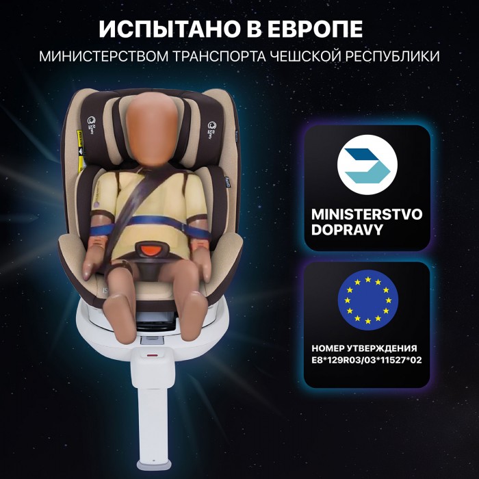 - Испытание изделия произведено в Европе — Министерством транспорта Чешской республики (номер утверждения E8*129R03/03*11527*02)