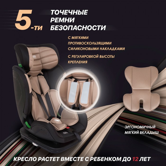 - Плечевые накладки 5-точечных ремней безопасности с противоскользящим силиконовым покрытием надежно фиксируют малыша в автокресле.