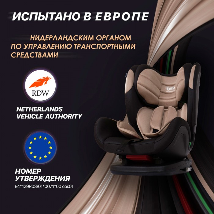 - Модель соответствует стандарту ECE R129 (I-Size). Испытание этого детского автокресла (включая краш-тест) выполнено Нидерландским органом по управлению транспортными средствами (номер утверждения E4*129R03/01*0071*00 cor.01).