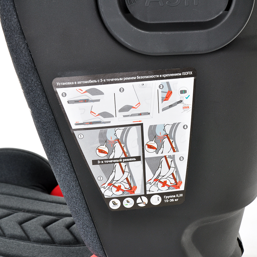 - Крепление с помощью системы isofix и/или трехточечного ремня безопасности.