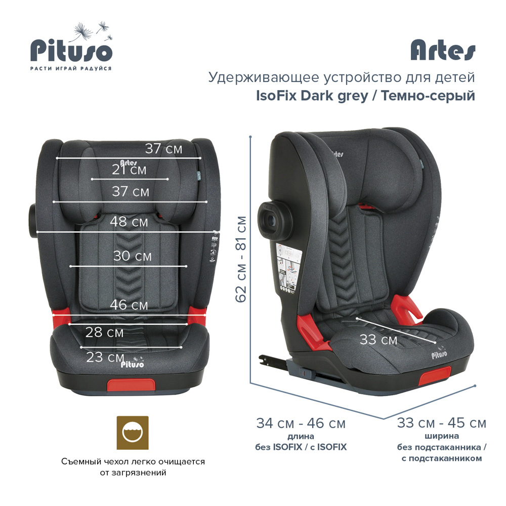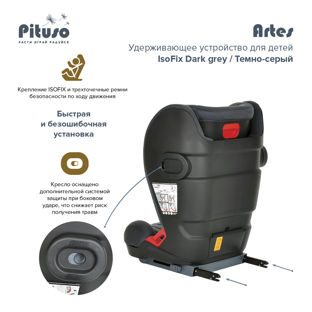 Автокресло PITUSO Artes (Питусо Артес) - качественное, недорогое и очень удобное автокресло для ребенка от 3 лет. Прочный противоударный пластик и дополнительная боковая защита обеспечат ребенку безопасную поездку в машине. Установка кресла очень простая и удобная, поэтому вы точно установите кресло правильно, что так же гарантирует безопасность в поездке. Кресло растет вместе с ребенком, меняясь по ширине и высоте. Для напитков предусмотрен подстаканник, который можно установить с любой стороны.