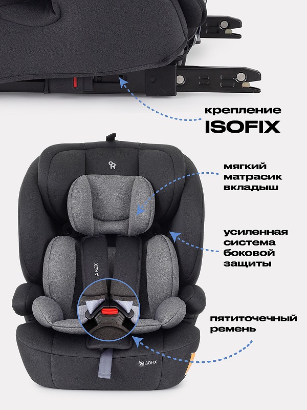 - Система крепления ISOFIX (использование штатного ремня автомобиля обязательно)