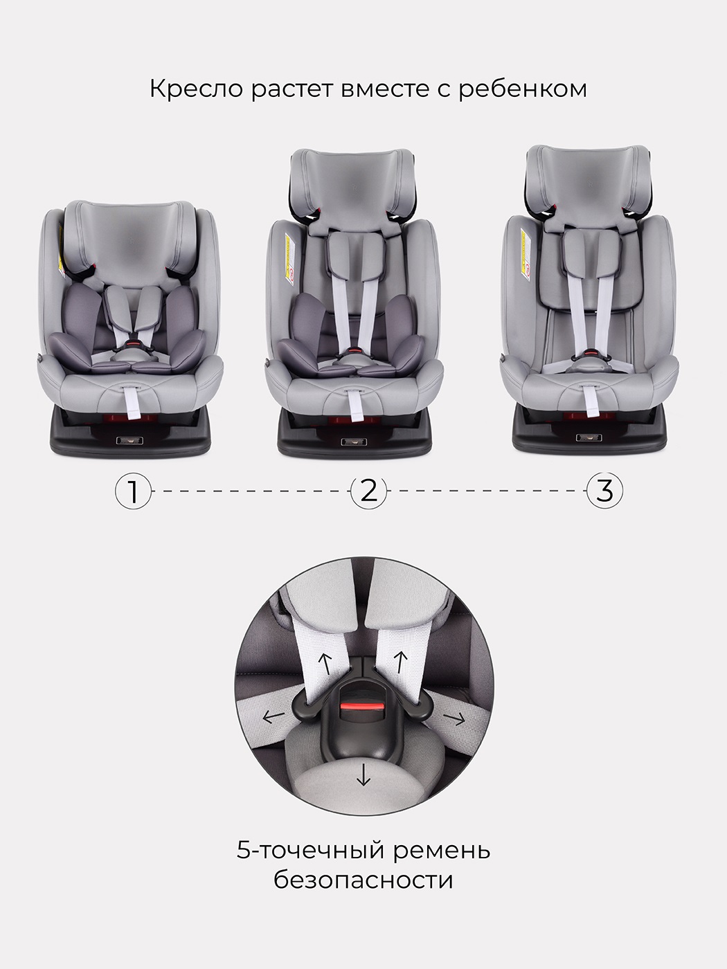 - 5-точечные ремни обеспечат полную безопасность