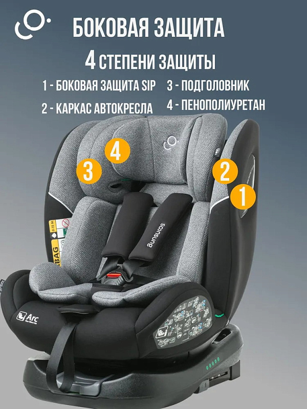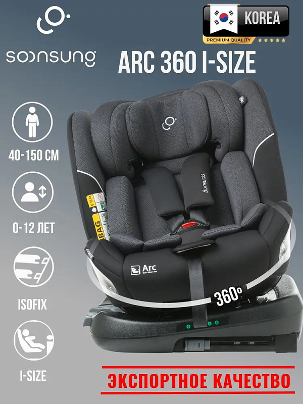 Автокресло Soonsung Arc (Сунсонг Арк) - прекрасный вариант безопасного и комфортного автокресла на весь необходимый период использования кресла, с рождения до 12 лет, ростом от 40 до 150 см и весом до 36 кг. Автокресло из Южной Кореи сочетает в себе современные технологии безопасности и продуманный дизайн, обеспечивая надежную защиту вашего ребенка в машине. Автокресло Soonsung ARC имеет сертификат безопасности KC, а также последний европейский сертификат ECE-R129 (i-size).