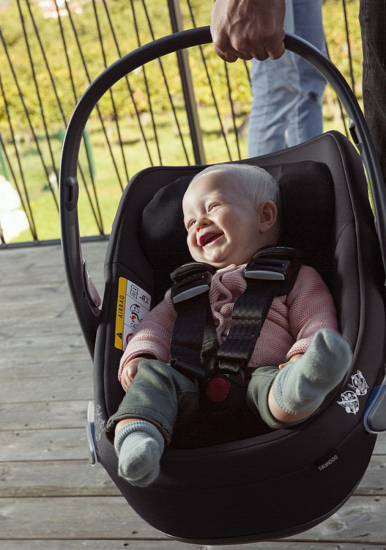 Swandoo уделяет огромное внимание мелочам, которые значительно упрощают эксплуатацию и повышают безопасность при пользовании. Все направляющие для автомобильного ремня на корпусе автокресла светятся в темное время суток, таким образом, стало проще ориентироваться при пристегивании в автомобиле. Сам корпус сделан в виде ракушки для повышения защиты плеч и головы малыша.