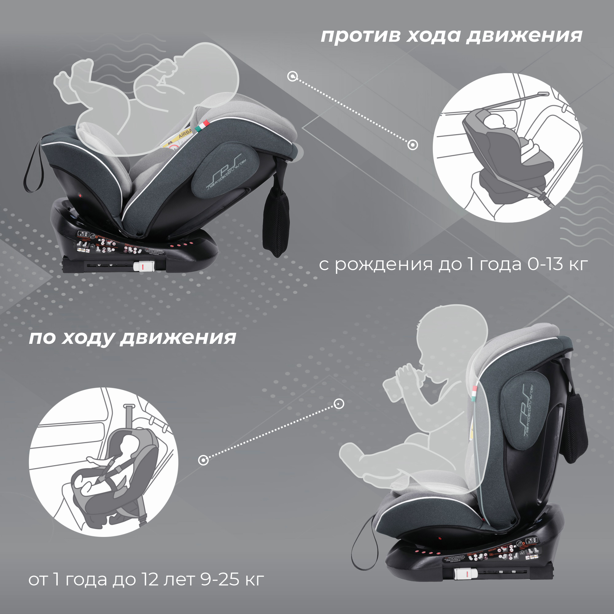 Группа 0+/1/2/3 от 0 до 36 кг.