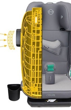 - Высокопрочный каркас: Дополнительно усиленный каркас (ударопрочный пластик) в сочетании с боковой защитой SIP создают высокую защищенность ребенка в случае боковых ударов.