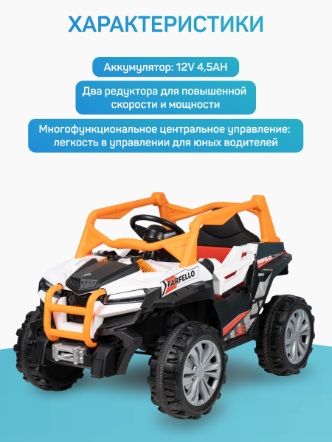 Подарите ребенку незабываемые моменты! Этот стильный и мощный электромобиль создаст атмосферу настоящего приключения на свежем воздухе.