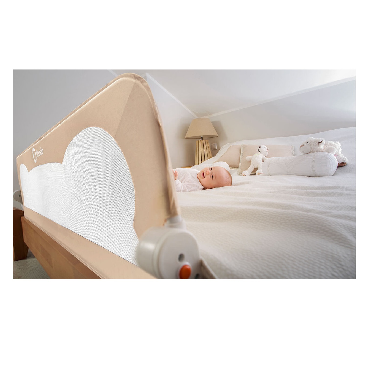 Барьер безопасности на кровать Lionelo LO-Eva (Лионело Ева) - защитный барьер обеспечит безопасность малыша во время сна на большой кровати пока родители могут отлучиться или заняться своими делами. Изделие предназначено для установки на боковую сторону кроватки, закрепляется под матрас. Предусмотрено использование с матрасом, высота которых не более 20 см. Для того, чтобы опустить барьер вниз, используются боковые кнопки. Отличается простотой установки, не требует усилий для ухода, рассчитан на длительную эксплуатацию.