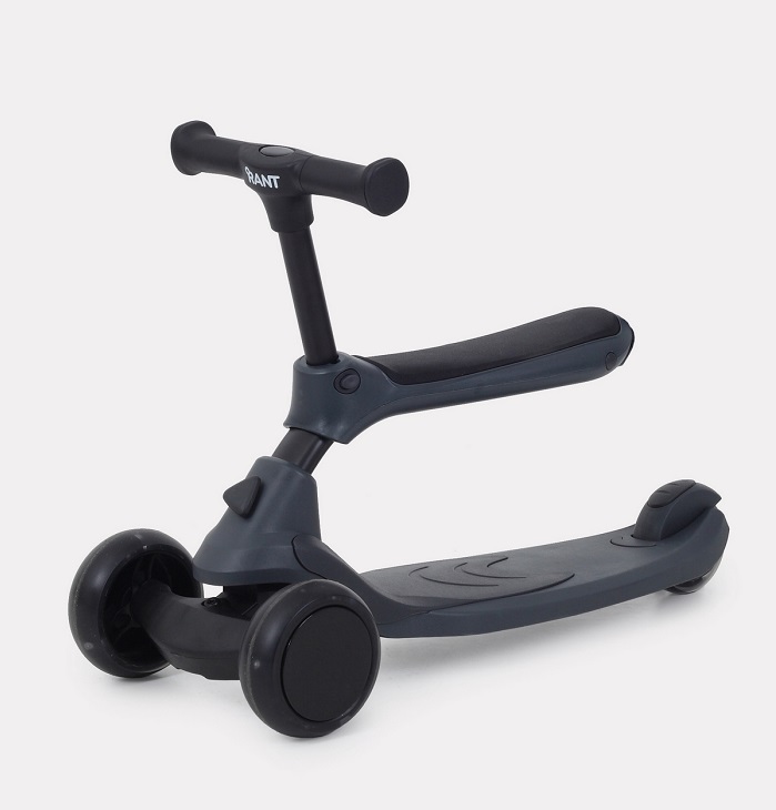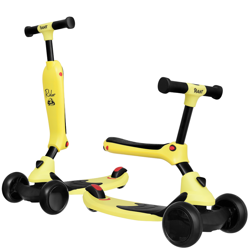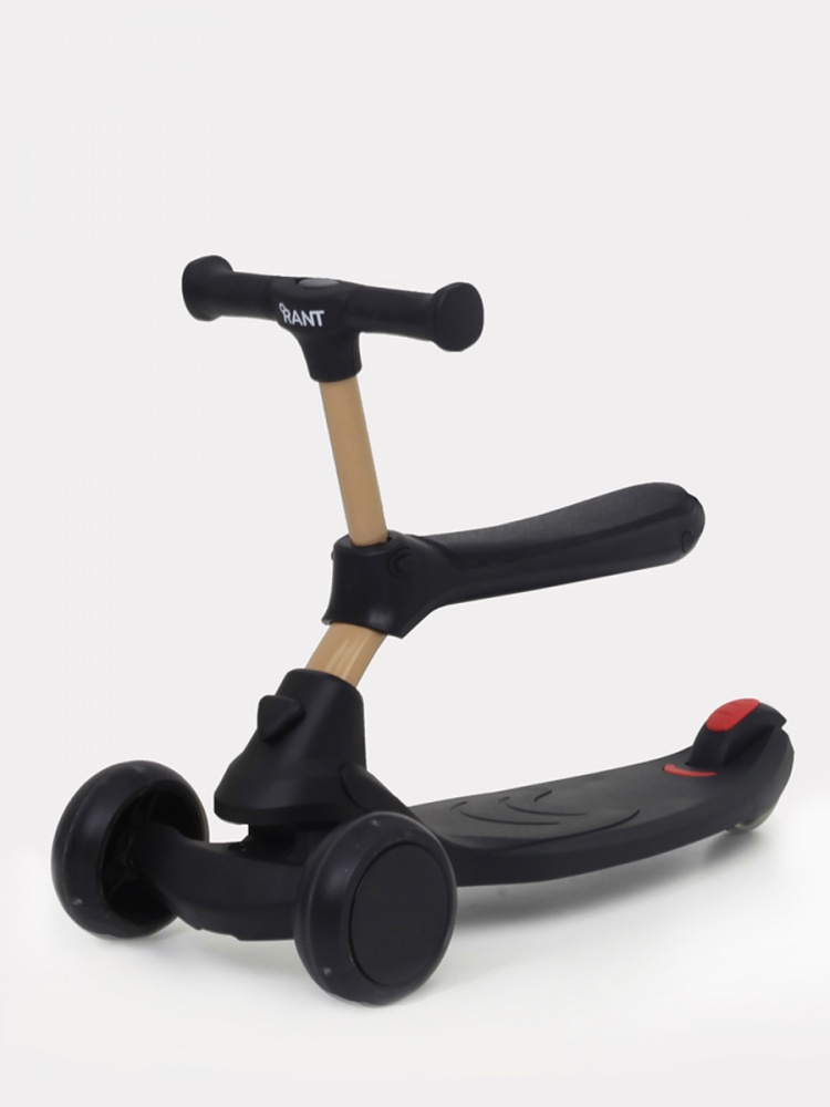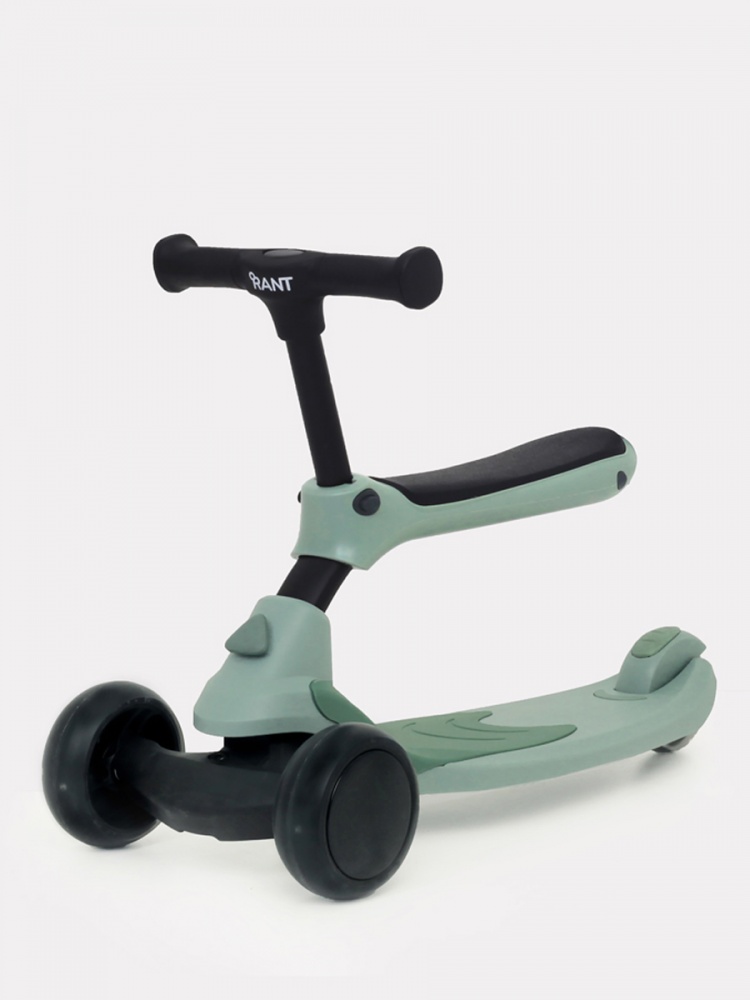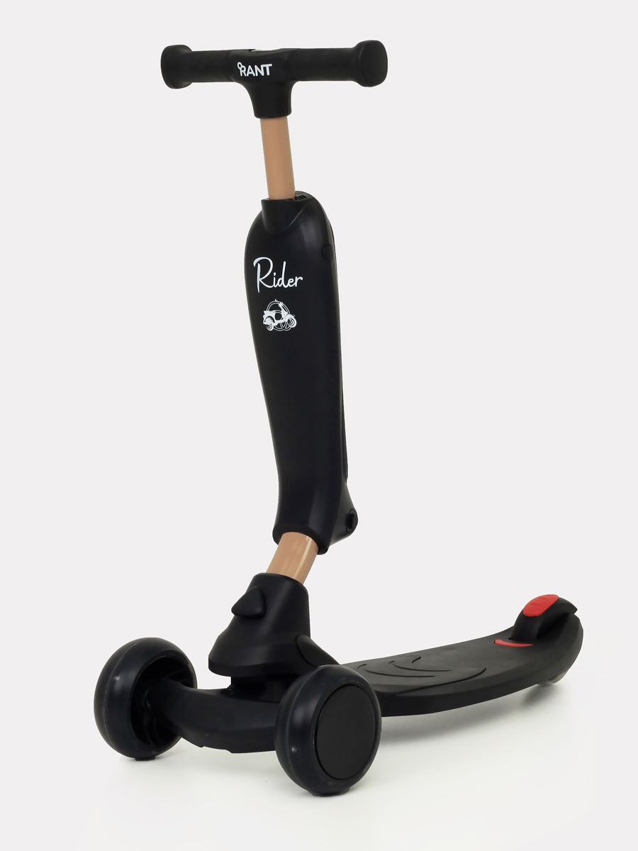 Беговел-самокат Rant Rider (Рант райде) - уникальный самокат -трансформер который подарит ребенку массу положительных эмоций на прогулке. Этот самокат может использоваться как для самых маленьких в виде каталки-беговела, так и для детей от 3 лет в виде полноценного самоката. Максимальная нагрузка на сидение - 20 кг, на самокат 50 кг. Для удобства пользования моделью трансформация с каталки в самокат осуществляется всего за 30 секунд. Передние колеса светятся при катании.