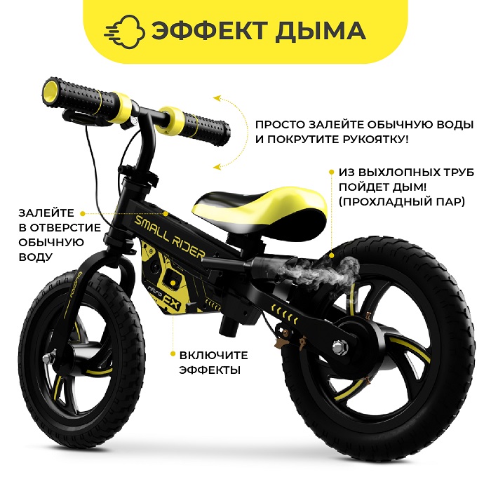 Беговел Small Rider Nitro (Смолл райдер нитро) - это самая последняя инновационная разработка, которая превращает беговел в настоящий детский мотоцикл! Теперь беговел это не только катание, но и крутые спец эффекты. При повороте ручки будет издаваться рев мотора, а с выхлопной трубы будет идти дым (холодный, полностью безопасный для ребенка). Такой беговел не оставит равнодушным, ни одного ребенка!