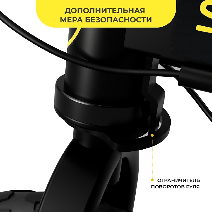 Очень важным для ребенка на беговеле является безопасность! Поэтому в данной модели предусмотрен ручной тормоз. Он позволит контролировать скорость и вовремя останавливаться. Дополнительно обезопасит поездку ограничитель руля. Детская моторика только начинает развиваться, и ребенок не может полностью контролировать свои действия. Во время движения, а также при резких поворотах ребенок может потерять контроль, ограничитель руля вернёт руль в исходное положение, тем самым поможет малышу избежать падения. При этом руль оснащен подшипником, что позволит рулю легко поворачиваться без дополнительных усилий.
