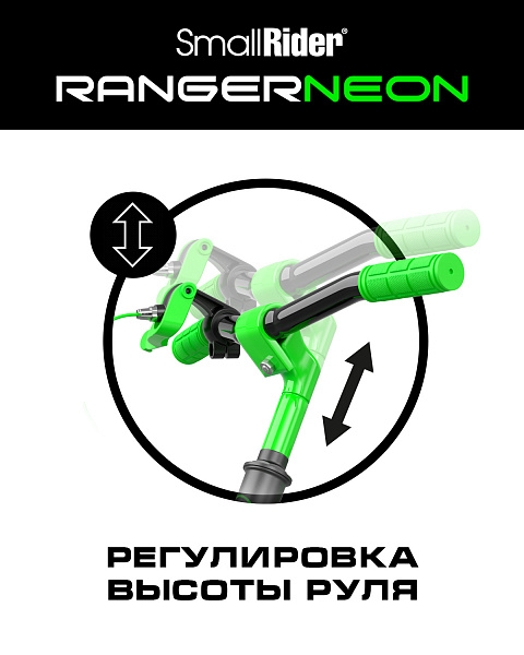 Беговел Small Rider Ranger 3 Neon (Смолл Райдер Рейнджер Неон 3 2021 рестайлинг ) - это невероятно востребованный, яркий, эффектный и доступный по цене беговел с массой преимуществ. В третьем поколении он стал еще лучше. Беговел позволит Вашему ребенку развить в себе необходимые навыки - чувство равновесия и ощущения баланса. Большие и вездеходные надувные колеса отлично амортизируют и предолеют различные поверхности. Ручной тормоз с удобным плоским курком позволит, помимо торможения ногами, лучше контролировать скорость. Кстати, в комплекте идет еще дополнительная рукоятка тормоза для монтаж под левшей. Руль и сиденье не только имеют возможность регулировки высоты под габариты ребенка, но также и наделены способностью менять угол наклона. Яркий и потрясающе выглядящий, беговел Рейнджер Неон станет отличным и любимым транспортом для Вашего малыша.