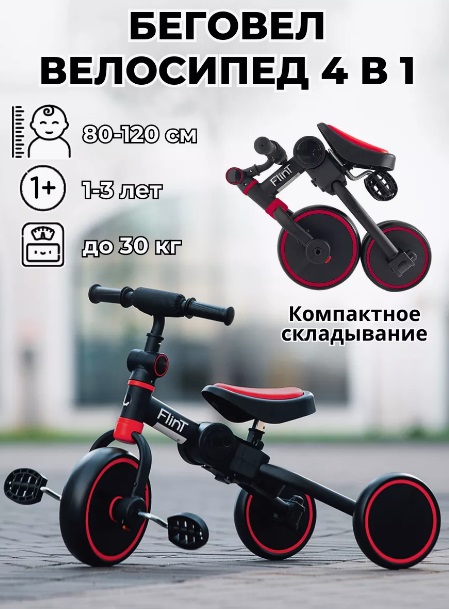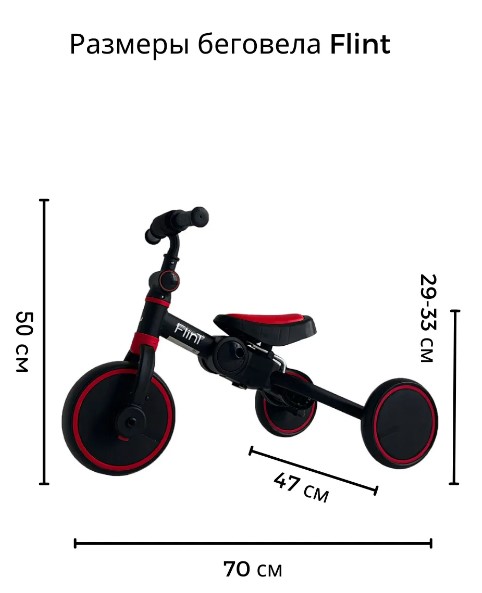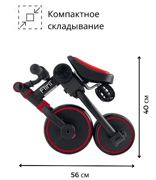 - Простой механизм трансформации и небольшие габариты в сложенном виде позволят брать беговел Flint на каждую прогулку или в дорогу.