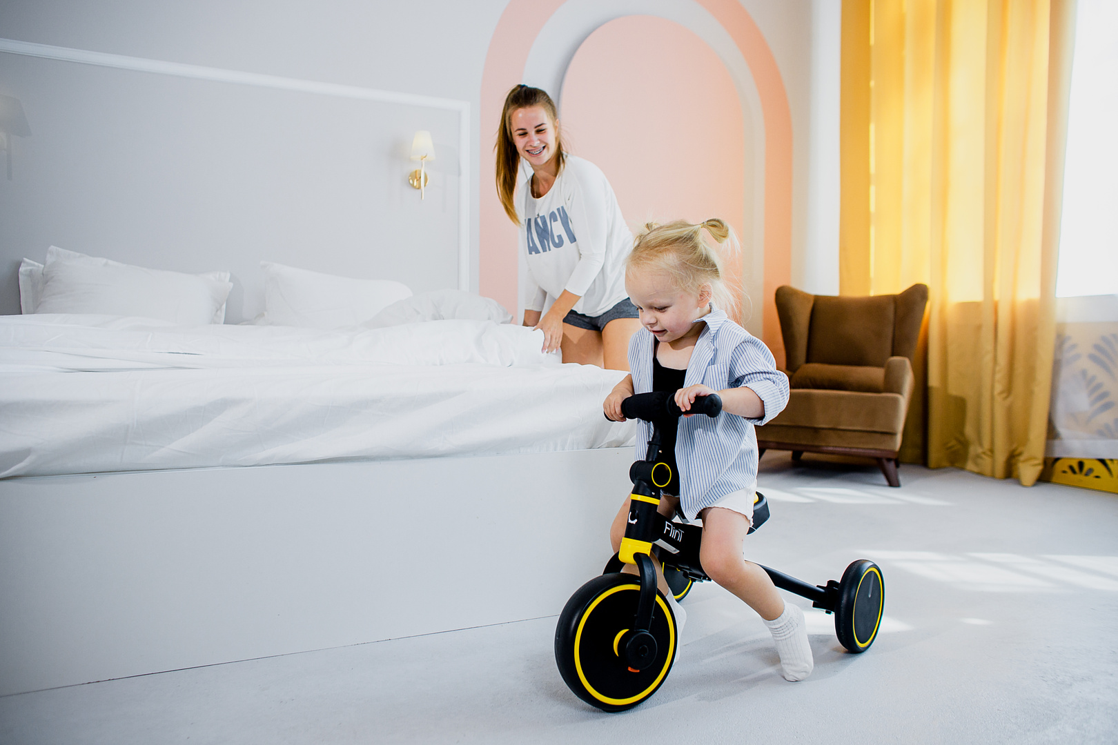 4. Беговел двухколесный- Все, что вам нужно сделать, это соединить задние колеса в одно устойчивое двойное колесо и снять педали нажатием всего одной кнопки;