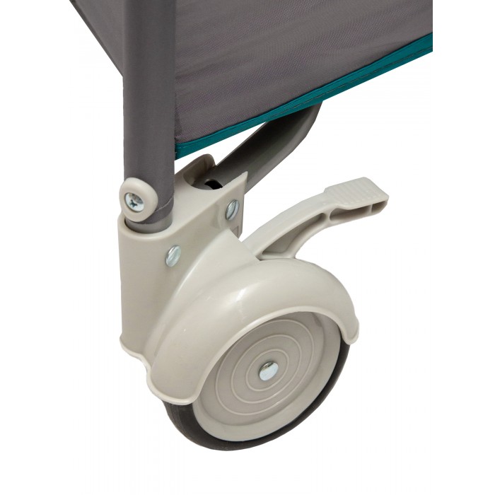 - Манеж оснащен 2 колесами с блокираторами. Благодаря которым его легко перевозить