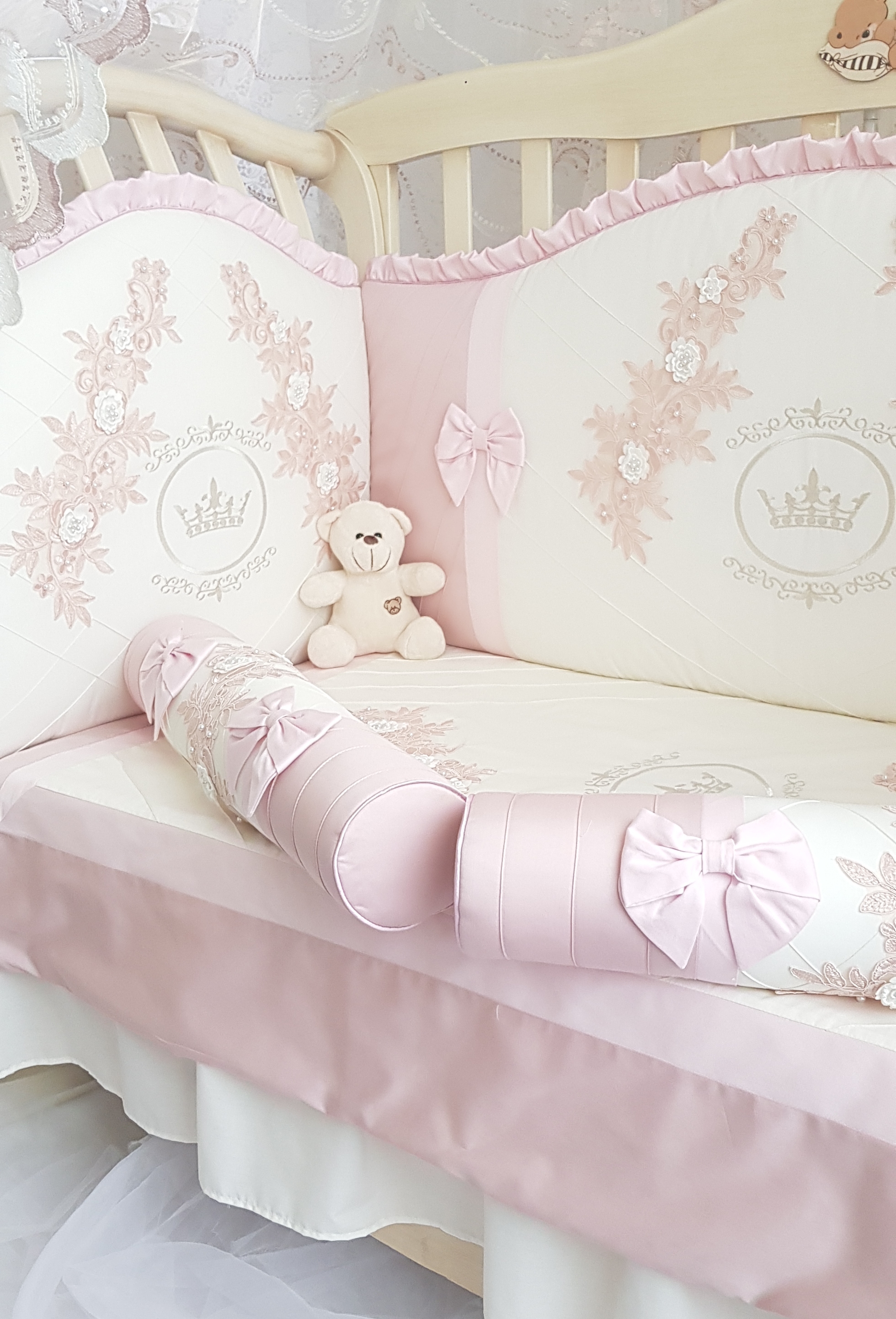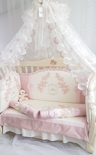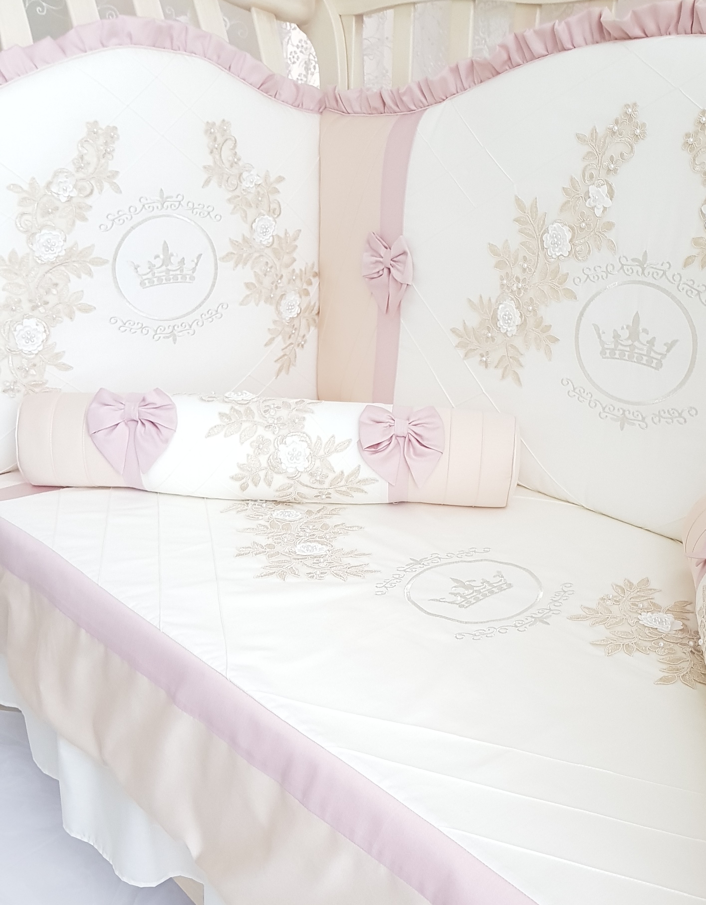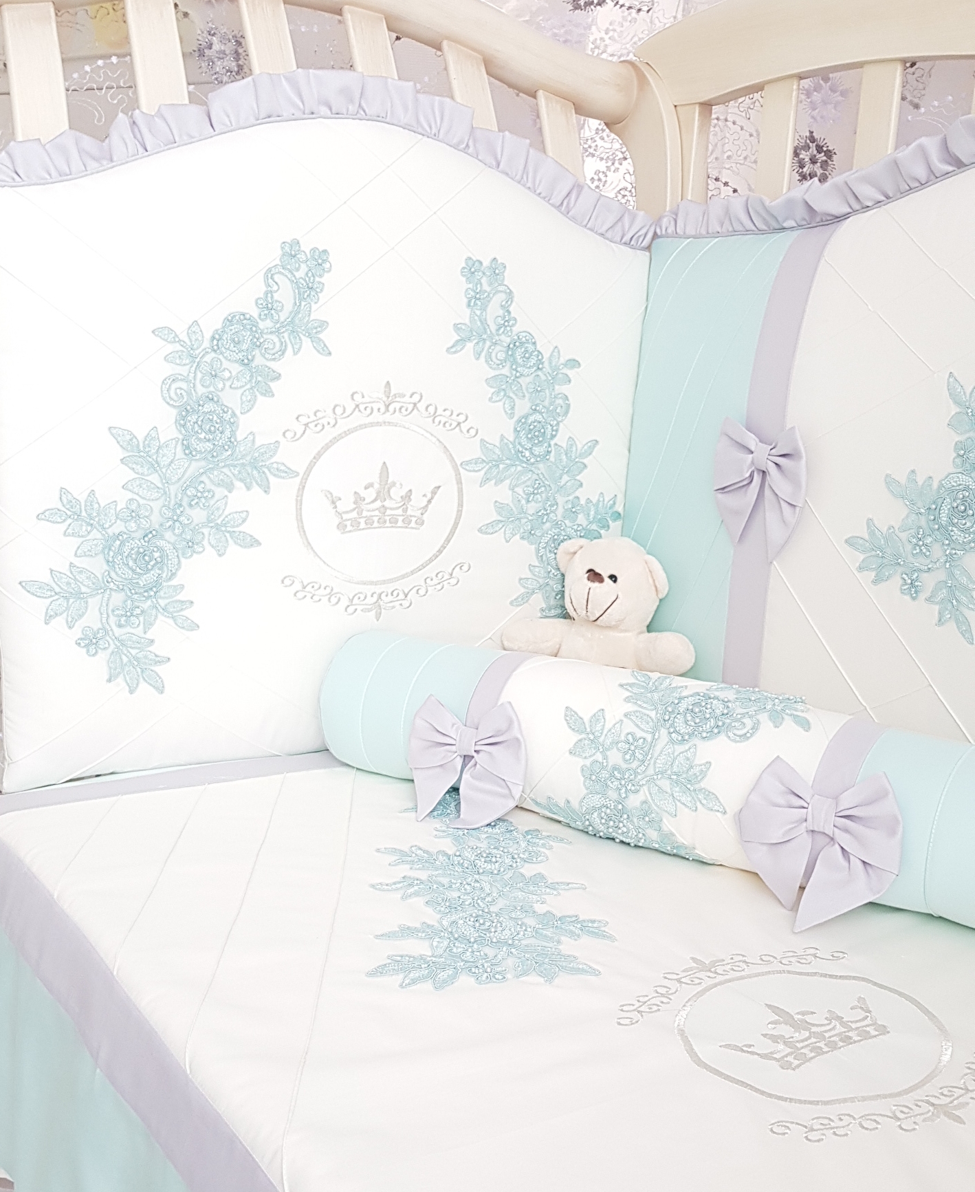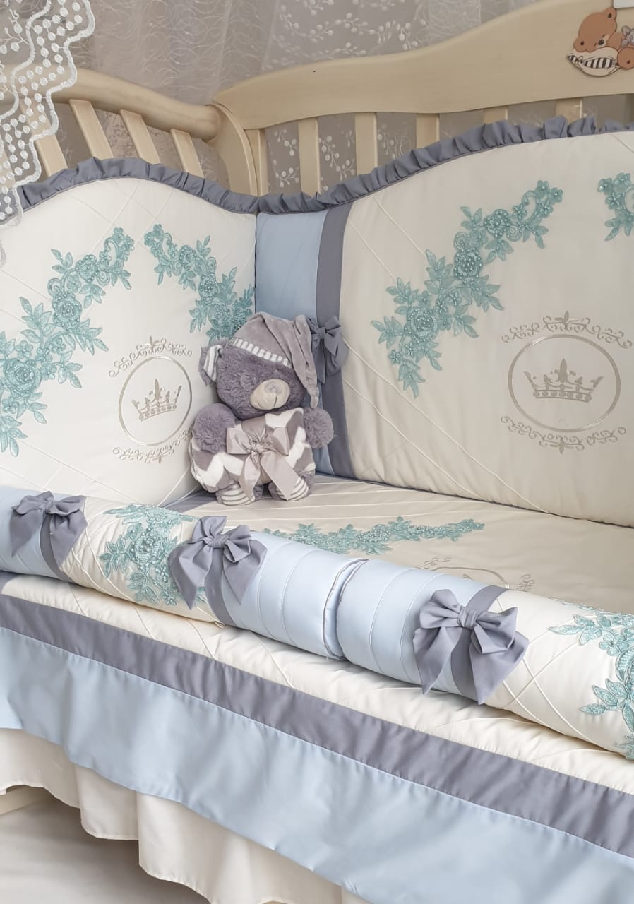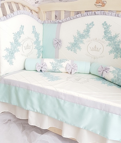 Каждый бортик в этом комплекте настоящее произведение искусства с вышивкой, аппликацией и специальными нитями. Смотрится очень красиво и эффектно.